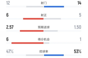 全場(chǎng)比賽數(shù)據(jù)如下(曼聯(lián)在后):