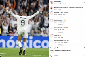 賽后,姆巴佩更新社交媒體曬照并寫道:“我們要戰(zhàn)斗到最后,加油馬德里!”