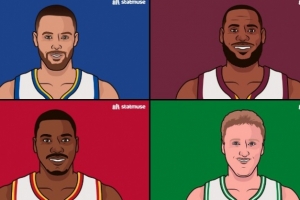 據(jù)統(tǒng)計,搶七大戰(zhàn)至少得20分10板5助2斷2帽,庫里成史上第四人,前三人為:伯德、大夢、詹姆斯。