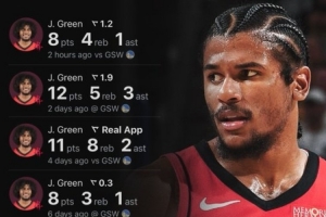 美媒曬出杰倫-格林系列賽每場(chǎng)數(shù)據(jù),除了G2打了一場(chǎng)好球砍38分6助攻之外,其他六場(chǎng)最高12分,四場(chǎng)得分個(gè)位數(shù)。