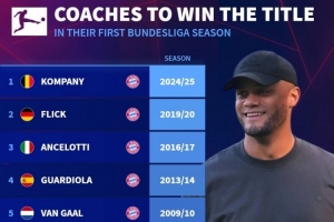 體育資訊5月5日訊 德國轉(zhuǎn)會市場盤點了德甲首秀賽季奪冠的教練,貝肯鮑爾、范加爾、瓜迪奧拉、安切洛蒂、弗里克、孔帕尼在列。