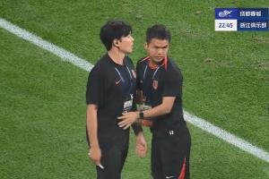 第23分鐘,蓉城助理教練不滿裁判,裁判到場邊向其出示黃牌。