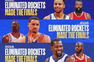 這是勇士隊(duì)史第五次在季后賽戰(zhàn)勝火箭,其中前4次均打進(jìn)了總決賽: