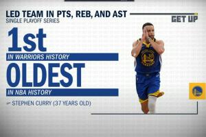 體育資訊05月06日訊 美媒GetUp統(tǒng)計(jì),庫(kù)里在本輪系列賽中,總得分、總籃板、總助攻都領(lǐng)銜全隊(duì)。