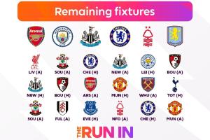 體育資訊05月06日訊 英超官方曬圖,展示爭(zhēng)5的6支隊(duì)伍積分和最后3輪的賽程。