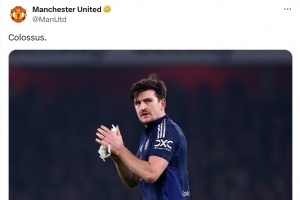 賽后,曼聯(lián)官方曬馬奎爾單人照,配文:巨像(Colossus)