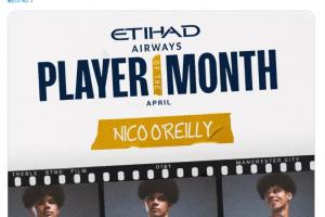 體育資訊05月06日訊 曼城官方發(fā)布了4月份隊(duì)內(nèi)最佳球員,20歲小將奧賴?yán)?dāng)選。