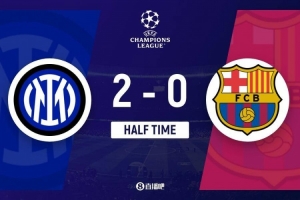 上半場傷停補(bǔ)時(shí)1分鐘,半場結(jié)束,國際米蘭暫1-0巴塞羅那。