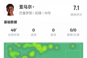 亞馬爾半場(chǎng)數(shù)據(jù)如下: