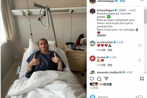 體育資訊5月7日訊 姆巴佩弟弟、里爾中場伊桑-姆巴佩上個月腿筋受傷,他更新社媒動態(tài),確認自己接受了手術(shù)。