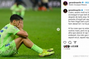 體育資訊5月7日訊 今天凌晨,巴薩在歐冠半決賽被國(guó)米淘汰,杰拉德-馬丁賽后發(fā)文鼓勵(lì)了球隊(duì)。