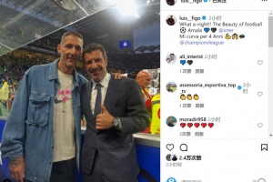 菲戈來到梅阿查,現(xiàn)場觀看了這場比賽,他在社交媒體上曬出與馬特拉齊的合照,配文:“多么美妙的夜晚,足球的魅力??Amala(國米歌曲歌詞)????北看臺4年的堅守??????”
