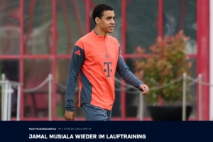 體育資訊5月7日訊 拜仁官方消息,穆西亞拉在當(dāng)?shù)貢r(shí)間周三上午首次回到訓(xùn)練場(chǎng)進(jìn)行跑步訓(xùn)練。