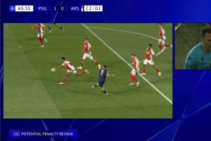 體育資訊5月8日訊?歐冠半決賽次回合,巴黎vs阿森納。阿什拉夫射門打到斯凱利手,VAR介入,裁判判罰點球。