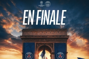 巴黎社媒發(fā)布為歐冠決賽制作的海報,并寫道:挺進決賽!????