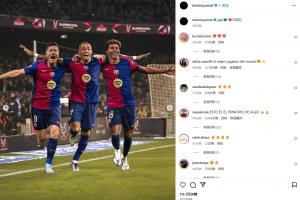 賽后,亞馬爾更新社媒曬出多張照片,其中一張是萊萬、亞馬爾、拉菲尼亞慶祝照。隨后拉菲尼亞也轉(zhuǎn)發(fā)。