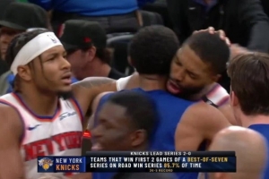 體育資訊5月8日訊 NBA季后賽,尼克斯在客場(chǎng)以91-90逆轉(zhuǎn)凱爾特人,大比分2-0領(lǐng)先。