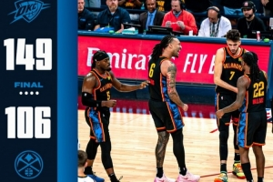 體育資訊5月8日訊 NBA季后賽首輪G2,雷霆主場149-106大勝掘金。