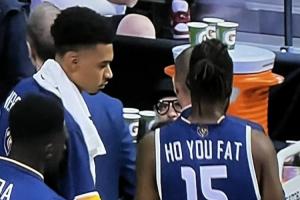 值得一提的是,2021-2023年,何佑發(fā)效力于大都會(huì)92,在此期間他與文班亞馬當(dāng)過隊(duì)友。而正是因?yàn)樵诖蠖紩?huì)92的效力經(jīng)歷,給了何佑發(fā)走紅的機(jī)會(huì)。2022年,文班亞馬所在的大都會(huì)92受邀與NBA發(fā)展聯(lián)盟點(diǎn)燃隊(duì)進(jìn)行了一場(chǎng)表演賽,當(dāng)時(shí)身為狀元大熱的文班亞馬是毫無疑問的焦點(diǎn)人物,不過何佑發(fā)因?yàn)樽约邯?dú)特的名字險(xiǎn)些搶走文班亞馬的風(fēng)頭,因?yàn)镠o You Fat直譯過來的意思是“婊子你真胖”(如果按照音譯,可能應(yīng)該翻譯成“史蒂夫-侯尤法特”)。