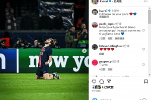巴黎邊鋒克瓦拉茨赫利亞社媒曬照慶祝晉級(jí)決賽,并寫(xiě)道:“完全專(zhuān)注于你的計(jì)劃?!?/p>