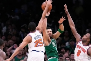 整場(chǎng)比賽,凱爾特人其實(shí)是用他們習(xí)慣也比較科學(xué)的方式,很大程度限制了尼克斯。4/5號(hào)位錯(cuò)防,把油漆區(qū)填滿,放特定球員三分,嚴(yán)控罰球、籃板和突破。尼克斯只拿了91分,這一端沒有太多可說的。