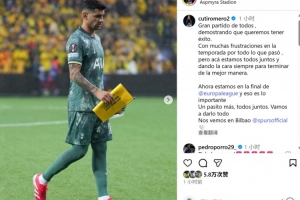 熱刺球員羅梅羅賽后社媒曬照發(fā)文寫道:“每個(gè)人都踢出了一場精彩比賽,展現(xiàn)了我們對成功的渴望。本賽季我們有過很多沮喪的時(shí)刻,但是我們現(xiàn)在團(tuán)結(jié)一心,將全力以赴以高光時(shí)刻結(jié)束本賽季?,F(xiàn)在我們已經(jīng)打進(jìn)歐聯(lián)杯決賽,這是非常重要的。離奪冠還差一步,我們齊心協(xié)力,將付出一切。讓我們畢爾巴鄂再見?!?/p>