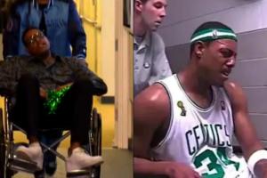 賽前綠軍名宿皮爾斯放話:“如果綠軍輸?shù)鬐2,將穿睡衣光腳步行24公里到演播室,你可以把房子押在這場比賽上,你在演播室看到恐龍的概率都比綠軍輸球概率要高?!?/p>