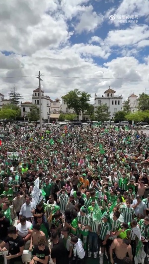 貝蒂斯晉級隊史首個歐洲賽事決賽后,球員們回到主場接受成千上萬的貝蒂斯球迷的歡呼????