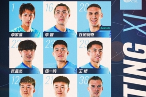 2-張衛(wèi) 8-周大地9-德·列昂索 10-薩卡里亞 13-彭鵬(GK) 14-趙石(GK) 46-申桓銘 49-張皓楠(GK) 56-江唯一