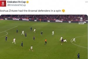 足總杯官推曬視頻并配文:齊爾克澤讓阿森納防守球員暈頭轉(zhuǎn)向?????