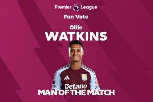 賽后,這名維拉前鋒被評(píng)為此役全場(chǎng)最佳球員。