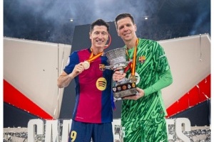 此役萊萬、什琴斯尼兩位波蘭球員首發(fā)出戰(zhàn),幫助巴薩奪冠,巴薩官方社媒曬出兩人與獎(jiǎng)杯的合照,并配上波蘭國(guó)旗的符號(hào)。