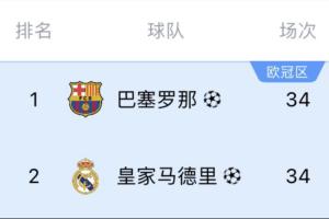 Opta超級計算機的最新預測結果顯示,巴薩的西甲奪冠概率為84.7%,皇馬的奪冠概率為15.3%??梢钥闯觯蜀R需要在本輪取勝才能將這一數字迫近。