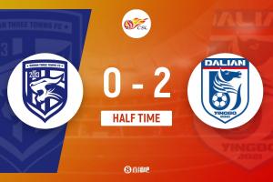 半場(chǎng)戰(zhàn)罷,大連英博暫2-0武漢三鎮(zhèn)。