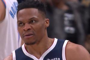 本場比賽,威少替補(bǔ)出戰(zhàn)27分鐘,12中2,三分9中2拿到6分3籃板1助攻1搶斷6犯規(guī),正負(fù)值-20。