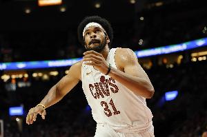 上半場,騎士內(nèi)線阿倫表現(xiàn)糟糕,場上毫無存在感,在15分鐘的時間里,投籃1中0,罰球2中2,僅拿到2分1籃板1助攻1蓋帽的數(shù)據(jù),正負值-29。