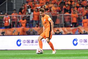 多數(shù)情況下,韓子龍和奧斯卡只有一人留在中圈一帶,另一人則投入?yún)f(xié)防。更明顯的例子是兩名邊后衛(wèi)。除了徐宏杰上半場(chǎng)參與過一次頭球進(jìn)攻,他和張宸梁一直在與對(duì)方外援纏斗,必要時(shí)邊前衛(wèi)進(jìn)行增援,形成局部二防一。這種務(wù)實(shí)的打法,抑制了主隊(duì)從兩翼發(fā)起的進(jìn)攻,在一對(duì)一的較量中,徐宏杰多次破壞了阿代米的突破和傳球,以至于后者遲遲打不開局面,一度換位到對(duì)方右路重啟進(jìn)攻,但在張宸梁那一側(cè),仍然占不到什么便宜。