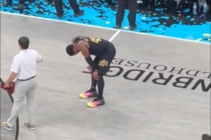 今天,有鏡頭拍到米切爾在場(chǎng)上扶著膝蓋的視頻,看起來(lái)他不太舒服。