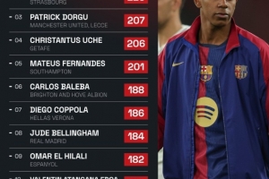 體育資訊5月13日訊 本賽季,巴薩盡管在歐冠中無緣決賽,但基本確定拿到國內三冠王。在這個過程中,小將亞馬爾發(fā)揮了關鍵作用。根據Squawka的數(shù)據統(tǒng)計,亞馬爾是本賽季五大聯(lián)賽贏得地面對抗次數(shù)最多的U21球員,達到了238次。
