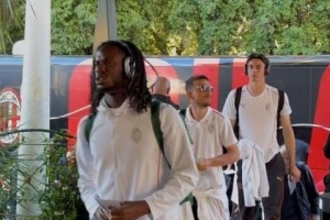 北京時間5月15日凌晨3時,意大利杯決賽將在羅馬奧林匹克球場舉行,由米蘭對陣博洛尼亞。當(dāng)?shù)貢r間本周一,米蘭全隊(duì)一起出發(fā)前往羅馬,包括本場比賽因傷缺席的邦多、索蒂爾等傷員也隨隊(duì)出征。在羅馬酒店門口還有一些米蘭球迷迎接球隊(duì),而賴因德斯、特奧是最受歡迎的米蘭球員。