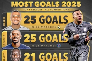 附2025年五大聯(lián)賽球員進(jìn)球榜: