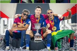 體育資訊01月13日訊 巴薩5比2皇馬,球隊前場三叉戟萊萬1球1助,拉菲尼亞2球1助,亞馬爾1球,三人合計貢獻4球2助攻。