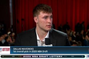 體育資訊05月13日訊 NBA樂透抽簽儀式今天在芝加哥進行,獨行俠最終以1.8%的概率抽中了狀元簽。在現(xiàn)場觀看抽簽儀式的2025年狀元大熱弗拉格接受了節(jié)目主持團的采訪。