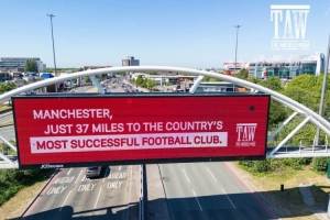 廣告牌上寫著:“曼徹斯特,距離英格蘭最成功的足球俱樂部僅37英里。”本賽季利物浦在英超聯(lián)賽中遙遙領(lǐng)先,目前以15分的優(yōu)勢位居榜首,還剩兩場比賽未進行。與此同時,曼聯(lián)度過了一個慘淡的賽季,目前僅排名第16位,只剩下下周的歐聯(lián)杯決賽可以挽救這個賽季。