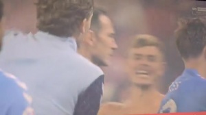 賽后考文垂主帥蘭帕德難免失落,一球迷找到他想要合影,蘭帕德攔下手機(jī)表示了拒絕。