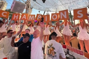 英國(guó)演員迪恩-加夫尼等人拍下了他的照片,當(dāng)時(shí)酒吧里播放著皇后樂(lè)隊(duì)的《我們是冠軍》,一群年輕女孩舉著寫有“冠軍”的卡片歡迎他。