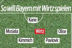 體育資訊05月14日訊 體育圖片報(bào)預(yù)測(cè)了下賽季拜仁的陣容。拜仁計(jì)劃讓維爾茨擔(dān)任10號(hào)位,并讓穆西亞拉擔(dān)任左邊鋒。在4231陣型之中,維爾茨和穆西亞拉能夠在場(chǎng)上互換位置。
