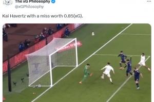 賽后數(shù)據(jù)機(jī)構(gòu)The xG Philosophy統(tǒng)計(jì),哈弗茨整場(chǎng)比賽共擁有高達(dá)1.98的預(yù)期進(jìn)球(包含點(diǎn)球大戰(zhàn)射失的點(diǎn)球,點(diǎn)球預(yù)期進(jìn)球?yàn)?.77),但120分鐘+點(diǎn)球大戰(zhàn)竟沒有一次破門。