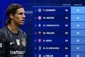 體育資訊5月14日訊 德國轉(zhuǎn)會市場統(tǒng)計了本賽季五大聯(lián)賽門將零封場次,并列出榜單,索默20場居首,諾伊爾19場第二。