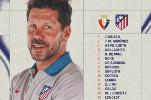 前鋒:7-格列茲曼、9-索爾洛特、10-科雷亞、19-阿爾瓦雷斯、22-朱利亞諾-西蒙尼